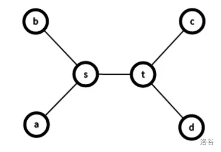如上图,$\delta(b,s)=\delta(a,s),\delta(c,t)=\delta(t,d)$。