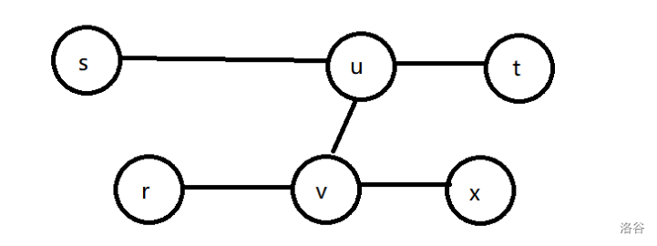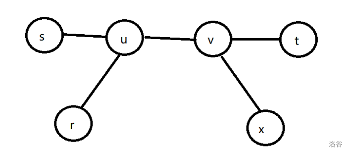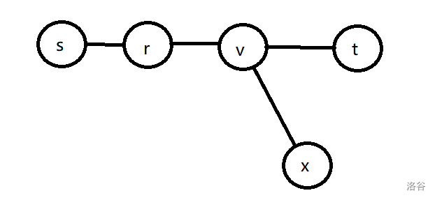 **情况 $3$:** $r$ 不在 $\delta(s,t)$ 上,且 $\delta(r,x)$ 与 $\delta(s,t)$ 不存在重合部分: